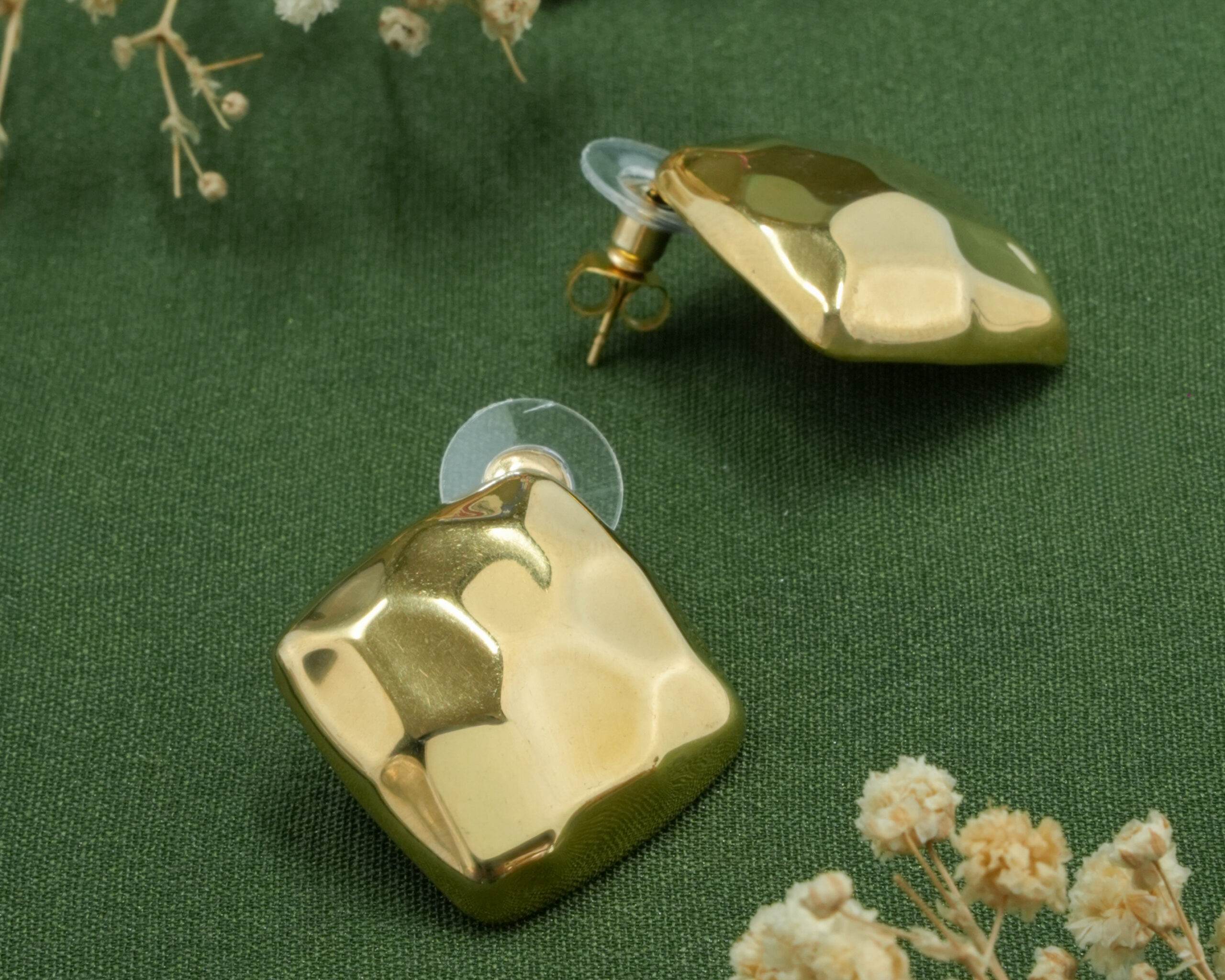Designed for women who carry confidence in every detail, the Auréa Sculpted Square Earrings bring a bold yet refined edge to your everyday look. Featuring an organic, sculpted square form with a high-polish gold finish, these earrings strike the perfect balance between modern structure and fluid elegance.