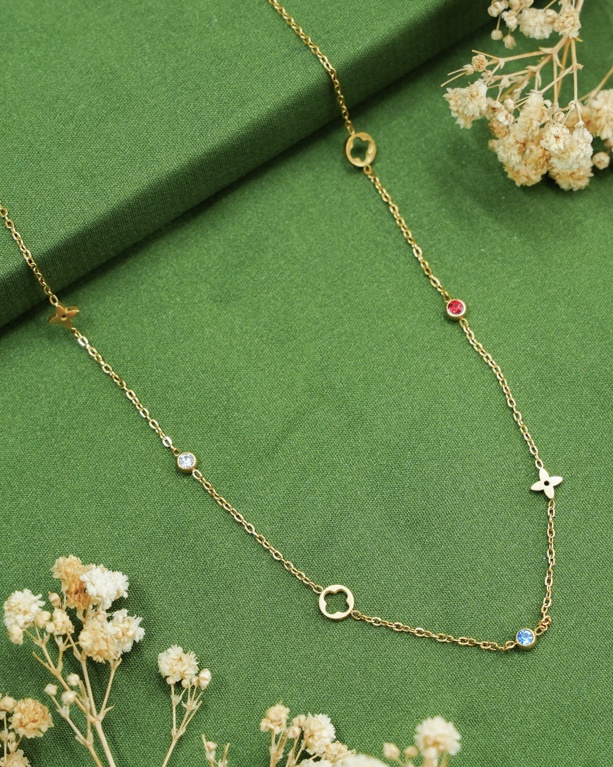 Designed for the woman who finds beauty in the details, the Céleste necklace transitions seamlessly from high-stakes meetings to intimate dinners. Its slender, high-polish chain is punctuated by alternating open-work stars and jewel-toned accents, creating a playful yet polished aesthetic. Whether worn as a standalone signature or layered for a curated look, this necklace adds a celestial spark to your everyday repertoire.