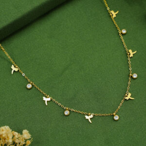 Capture the delicate balance of grace and transformation with the Élysian Winged Dragonfly Necklace. Designed for the modern woman who appreciates nature-inspired artistry, this piece features finely sculpted dragonfly charms interspersed with brilliant-cut droplets that catch the light from every angle.